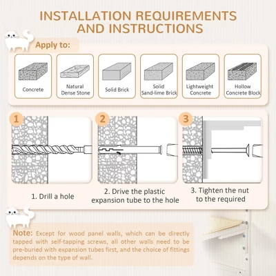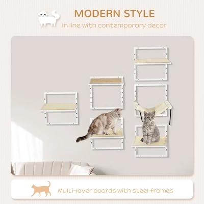 Soft Cat Hammock: A luxuriously soft, plush kitty hammock provides a comfortable cat bed, merging a super cozy space to snooze with the height cats love. The friction-textured mats on the flat platforms make it easy to jump from a surface to another. All the fabric is removable and machine washable for easy cleaning; hammock fabric included.Wall-Mounted: A wall-mounted design lets you give your fur baby extra height, allowing you to position the climbing toy by a table, ledge, couch, chair, bed, or countertop, creating a cozy spot to nap and lounge around far up above the ground.Multiple Levels & High-Stability: A healthy domestic feline adult can jump nearly 5 or 6 times their body length, about 8 feet in the air on average, and with that in mind, these 6 levels can reach your cat’s potential. Our high-quality cat furniture is made to withstand big jumps and easily allow kitties up to 11 lbs. to have fun.