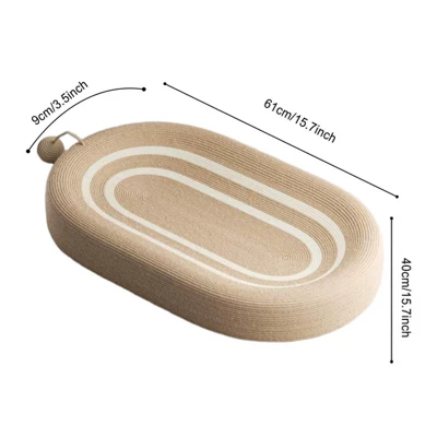 * 【Non Slip Bottom】The sisal scratch pad bowl is with non slip and moisture resistant bottom, great for various cats, kittens, etc.* 【 Material】The oval cat scratch pad is made of tightly woven sisal material, which can bear strong scratching and claw grinding.* 【With Ball Toy】The cat cardboard lounge bed is also equipped with a Ball toy for pets entertainment to spend leisure time.* 【Spacious Design】The cat scratching board is in size 61cmx40cmx9cm/24.02inchx15.75inchx3.54inch, ample space for stretching out and rest.* 【Multifunctional】The cat scratcher board is not only for scratching board, but also it is a rest lounge bed nest.