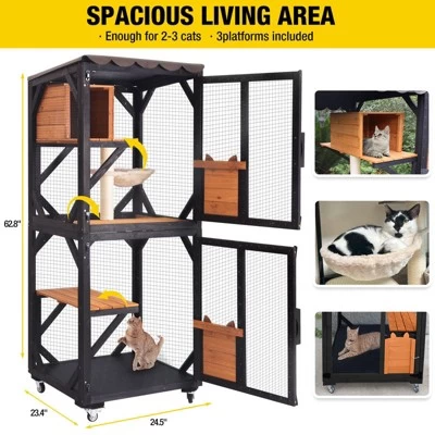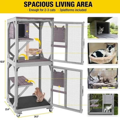 The Aivituvin AIR22-M Catio Wooden Outdoor Wheeled Cat House is the purr-fect solution for pet parents living in apartments or with small backyards or balconies. Give your furry feline an outdoor experience while keeping them safe and secure in their own enclosure. This expandable catio offers a spacious play area for your cat to climb, play, and relax in. Whether used indoors or outdoors, this catio provides your pet with safety, comfort, and entertainment.Note: Price is for one set. Order additional sets to expand!