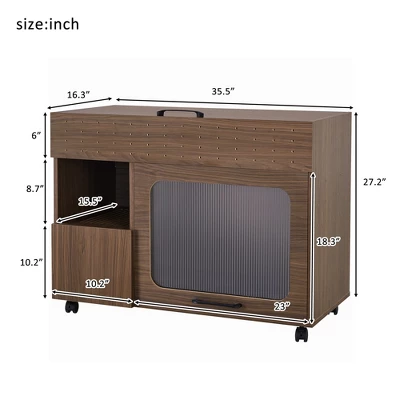 DESIGN: Furniture Style Walnut Sidetable Cat litter box.Disguised as furniture: The appearance imitates bookshelves, low cabinets, or decorative cabinets, and the sand basin entrance is covered by hidden door panels or louver grilles to maintain a clean and beautiful space.