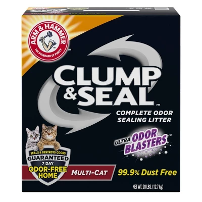 Keep your home odor-free with this Cat Litter Clump & Seal from Arm & Hammer. This self-clumping kitty litter is formulated with moisture-activated micro-granules that seal in odor and baking soda that effectively destroys odor, providing odor protection for up to seven days. Ideal for multiple cats, this cat litter with an ultra-low dust, strong-clumping formula makes cleanup especially easy and is completely safe for your feline friends.
