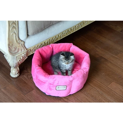 Pamper your pet in pink luxurious velvet with Armarkats Model C03CZH pet bed. Featuring a waterproof and skid-free base, this precious bed is perfect for cats and extra small dogs. It is filled with extra thick, 100% poly fill for maximum comfort. Machin