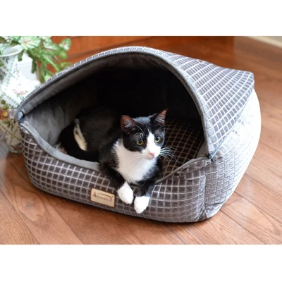 If you want a cozy place for your cat or small dog, Armarkat offers its Model C34HHG/SH pet bed. Available in bronze and silver, this pocket-like bed features luxe velvet upholstery. It is filled with extra-thick, 100% polyfill for comfort. Added perks include a waterproof base that will not skid and a machine washable pad. The silky and soft coverings are an easy maintenance to keep it clean and fluffy. Inside cushion is machine washable to tackle pesky messes. Six months manufacturer warranty against defects. Dimensions: 24″(L) x 18″(W x 13″(H)