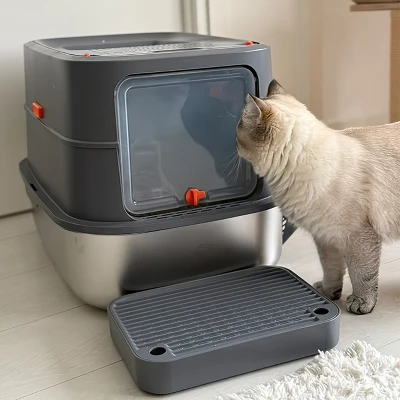 - 【Stainless Steel Structure】0.8 mm 304-grade pan—rust-proof, chew-proof, and non-porous; zero litter claw-grooves, zero odor absorption—wipes clean in seconds and stays looking new for years.