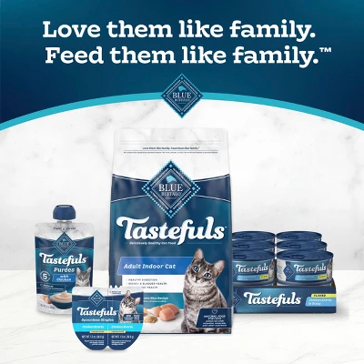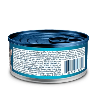 - INCLUDED IN PACKAGE: contains one (1) 5.5-oz. can of BLUE Tastefuls Flaked Chicken Wet Cat Food Entrées in Gravy