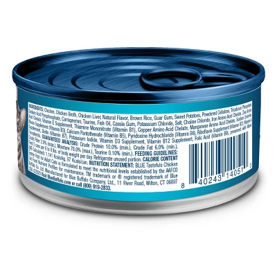 - Contains: One (1) 3-oz. can of BLUE Tastefuls Wet Cat Food, Chicken Paté Entrées