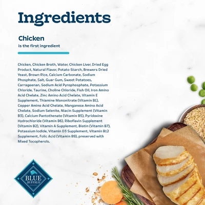 - DELICIOUS CHICKEN FIRST: The first ingredient in this natural Blue Buffalo cat food is tender cuts of high-quality chicken in a savory gravy your cat will love