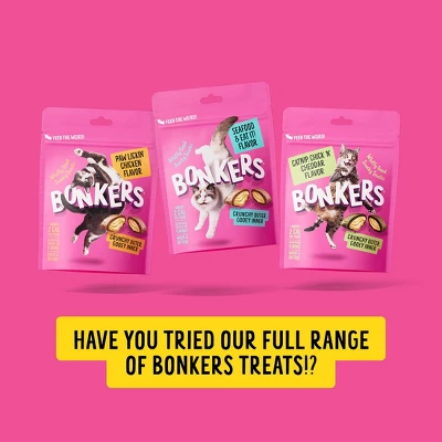 - IRRESISTIBLE TASTE: Crunchy on the outside, gooey on the inside, these healthy cat treats deliver a texture and taste combination that cats at all life stages will go Bonkers for.