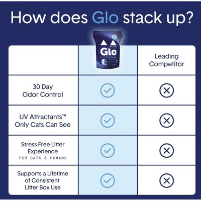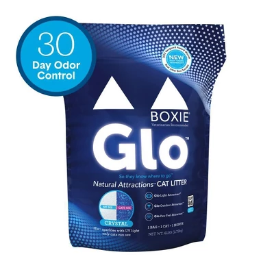 Boxie® Glo™ Crystal Cat Litter keeps your home fresh and your cat or kitty happy with its advanced 30-day odor control. The moisture-absorbing crystals lock in odors for easy maintenance, making litter box care effortless. Designed with patented Proactive Glo™ Light Attractant technology, UV-visible sparkles guide your cat to the litter box, encouraging healthy habits and preventing house-soiling.