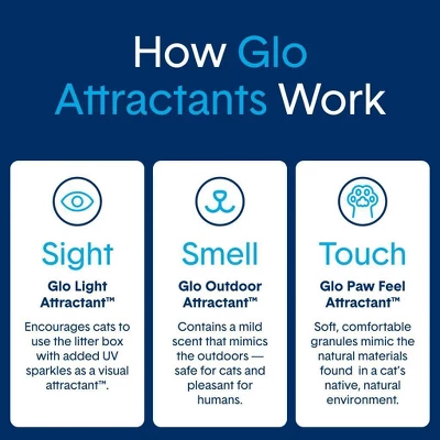 - Gloâ„¢ light attractant guides cats and kittens to the litter box