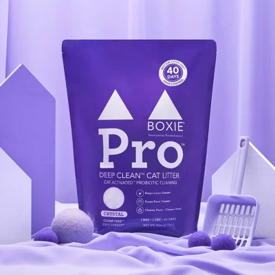Boxie® Pro™ Non Clumping Cat and Kitty Litter delivers a cleaner, healthier litter box with 40-day odor control powered by proprietary probiotic technology. This innovative formula naturally fights bad bacteria, keeping your home fresher for longer. The self-cleaning system means you only need to scoop solids while probiotics handle the rest, continuously reducing odor-causing bacteria for a fresh-smelling litter box after every use.