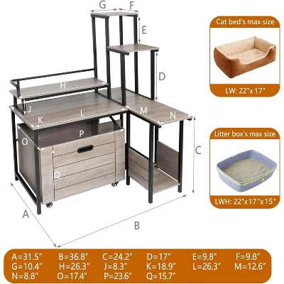 Transform your space with this innovative 2-in-1 cat litter box enclosure that doubles as a stylish plant stand and end table. Designed for corners, this versatile furniture piece (36.8″L x 31.5″W x 51″H) conceals your litter box while providing a decorative surface for plants or decor. The smooth-sliding pull-out tray makes cleaning effortless, while the enclosed design contains odors and reduces litter scatter. The included PVC entrance mat traps litter from paws, and the spacious interior fits most standard litter boxes or can convert to a cozy cat house. Crafted from durable wood with a modern gray or brown finish, it blends seamlessly with your living room, bedroom, or entryway decor. Easy assembly included.