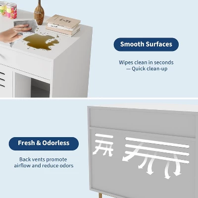 Keep your home clean and stylish with this white wooden cat litter box enclosure. Featuring a barn door design, this hidden litter box cover keeps odors and mess discreetly contained while blending seamlessly with your home décor. The spacious interior fits most litter boxes, while the enclosed design provides privacy and comfort for your cat. Versatile and functional, it can also be used as a nightstand, end table, or accent cabinet. Built from durable engineered wood, this cat washroom cabinet is sturdy, pet-friendly, and designed to enhance both your cat’s comfort and your living space. Overall size: 31.5”W x 19.7”D x 26.2”H.
