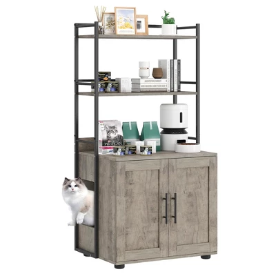 This multifunctional cat litter cabinet combines a hidden litter box, cat house, bookshelf, and storage cabinet into one unit. Constructed with high-quality MDF and a sturdy iron frame, it features a double-layer storage shelf and a 20.6¡° ¡Á 17.7¡± countertop, offering ample storage space. Its enclosed design effectively prevents odors and protects your cat’s privacy. The side-opening door allows for easy cleaning, and installation is simple and quick, making it an ideal choice for modern homes.
