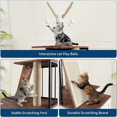- Cat Scratching Post & Play Area: Featuring a sisal-wrapped scratching post, scratching board, interactive toy balls, and a cozy resting platform, this furniture provides your cat with endless entertainment and comfort while promoting healthy scratching behavior.