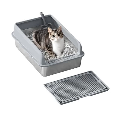 Crafted with rust-resistant stainless steel, this splash-proof cat litter box delivers long-lasting durability & effortless cleaning. Its non-stick electrolytic finish prevents litter adherence, while the smooth surface allows quick rinsing or wiping—ideal for a washable, low-maintenance cat toilet. This high-capacity stainless steel cat litter box comfortably accommodates big cats. The deep 6″ structure holds 30L+ of litter, reducing refills to every 3-5 days. Ample interior space ensures privacy while minimizing litter scatter.
