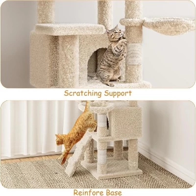 - Sturdy and Secure:Supported by a strong structure and secured with an anti-tip kit, this cat tree is strong and safe for up to 5 cats to climb and play with peace of mind.