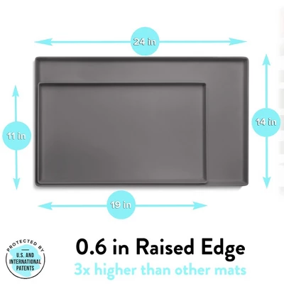 - EXTRA HIGH EDGE: CatGuru Cat Food Mat is the only cat food mat on the market that can hold up to 5 cups of spilled food and water due to the raised outer edges. This heavy duty pet food mat is specially designed for messy eaters. Use this cat mat under cat bowls, cat water fountain or cat feeder to protect your floors.