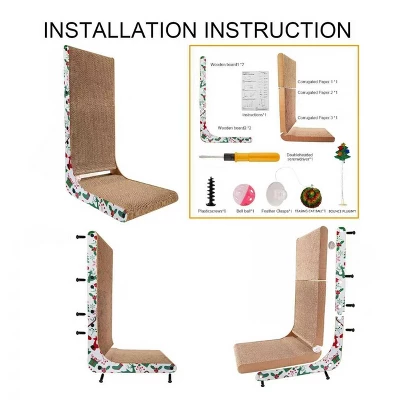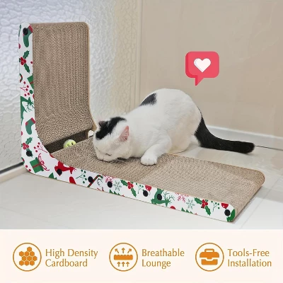 【L Shaped Scratcher】 L-shape wall scratcher can not only be used as a scratching pad but also a mini playground for cats to lounge, climb, play, rest, scratch, stretch to keep overall healthy, enjoy endless fun. Your lovely cats can find their favorite way to chill out. Size: 23.6 x 15 x 9.45 inch, Thickness of cardboard: 1.6 inch. Weight: 1.4kg【3 in 1 “L” DESIGN】 The L-shape design allows the cat scratcher to be placed flat on the floor, vertical against the wall and turn over as a ramp. Cats can either scratch horizontally, vertically or on a ramp based on their preference.【Build-in Balls】: The cat scratch pad has one built-in cat toy balls(bell ball) to inspire your cat to chase and play, greatly improves the fun of cat scratch. The balls are all attached to each track, no need to worry about cats accidentally eats them and allows cats to push the ball back and forth freely.【Durable and Eco-friendly】The dense corrugated cardboard scratch surface is double-walled with varying thickness for increased durability, which makes our cat scratchers last longer than other cheaply-produced brands.The solid wood frame can prevent corrugated cracking effectively and also have good abrasion resistance. 100% eco-friendly and recyclable non-toxic corrugated paper is perfectly healthy for your adorable cats.【Protect Furniture from Cat Claw】A sprinkle of catnip on the scratchers does wonders for luring cats to the right scratching spot. Help protecting your furniture from claw damage, reducing unwanted scratching of other household objectsv