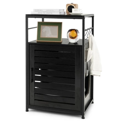 Costway Cat Litter Box Enclosure With Louvered Door& 3-Tier Shelf Cat House Side Table