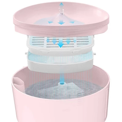 - CONTINUOUS FLOW: the water flows upward, just like a drinking fountain for humans, but for dogs and cats. The continuous flow keeps the water fresh, oxygenates, and eliminates stagnation.