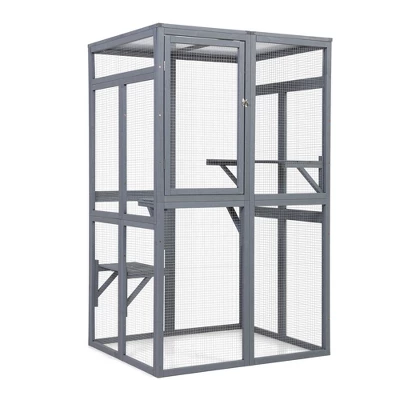 Stylish & Functional Design: Designed for safety, comfort, and entertainment, this outdoor cat enclosure features multiple platforms, a sunshine board, a cozy hammock, and convenient doors. It¡¯s perfect for ensuring your cats enjoy fresh air and playtime while staying protected from outside dangers.
