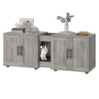 - Spacious Dual-Room Design: Features two separate compartments, each roomy enough to fit most standard litter boxes. Low-step entries and hidden ventilation slots ensure easy access and comfort for cats of all ages, including kittens and seniors.