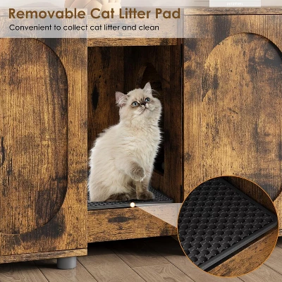- Thoughtful Feline-Centric Features Designed with your cat’s comfort in mind, this enclosure features a perfectly sized center entrance hole and includes four ventilation holes on each cabinet’s back panel to ensure proper air circulation and interior visibility. Constructed from waterproof materials, the entire unit resists odors and while being exceptionally easy to wipe clean. The rattan doors add an attractive touch while allowing airflow, creating a comfortable, well-ventilated spac