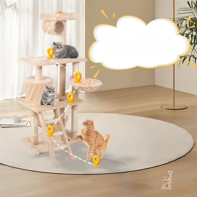 - Rich Play Elements: Includes 3 perches (easy jumping), 2 fluffy hammocks (stretching), sisal-wrapped scratching posts with hanging play balls, and a spacious condo (luxurious napping)
