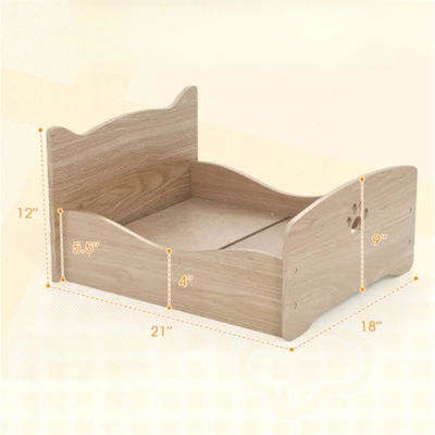 This pet bed fitting multiple small animals like guinea pigs and ferrets. Its low frame allows easy access. Guardrails and a headboard keep pets secure and prevent bedding from sliding. The 2.2″ – high frame keeps pets off dusty/cold floors and promotes airflow. Hollow paw and ear – shaped headboards add charm, and the faux wood finish matches various decor styles. It comes with labeled parts and clear instructions for easy assembly. Note: Use a pet bed mat smaller than 20″ × 16″ after setup.