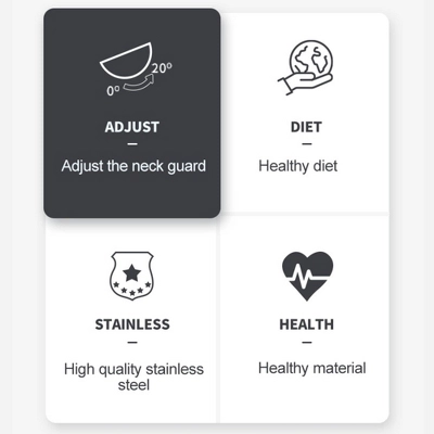 - Wide, raised, and angled drinking cup to prevent fatigue and discomfort