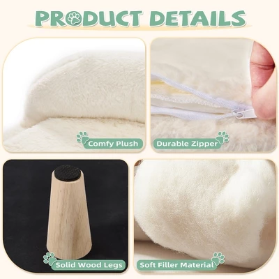 - 【Stable Structure】: Crafted from high-quality wood, this cat sofa is incredibly sturdy and durable. The four wooden legs ensure stability, and each leg is equipped with anti-slip pads to prevent floor scratches and reduce noise.