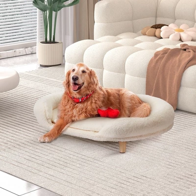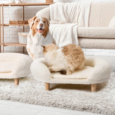 - 【Ensure Your Pet’s Comfort】: The semi-circular backrest offers a cozy space for pets to curl up and sleep, giving them a sense of security. The solid wood legs elevate the pet sofa, keeping it off the ground for added comfort.