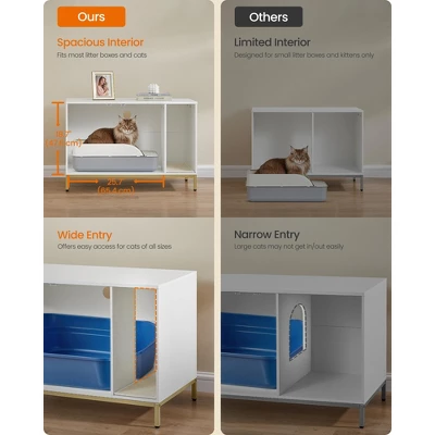 - Elegant Modern Design – With a crisp white finish and sleek gold metal frame, this chic litter box enclosure complements any decor while keeping messes out of sight.