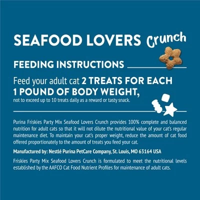 - Purina Friskies Party Mix cat treats featuring real ocean whitefish as the number 1 ingredient with the flavors of lobster, scallops and shrimp