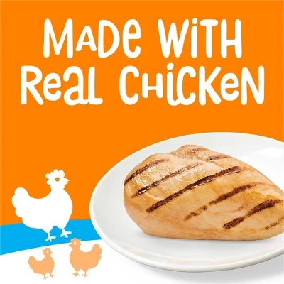 Wow your cat at snack time or mealtime with Purina Friskies lil’ Lickables Cat Treats With Chicken. Made for snack time or to be added to her favorite kibble, these soft cat treats are lickable and easy to serve. They have a divine creamy puree texture and come in convenient hand-held tubes with a tear-open top—simply tear and squeeze and she’ll enjoy the tasty puree, while you enjoy a bonding moment with your favorite feline. Made with real chicken, each tube measures 0.5 ounces—the perfect size for a delicious snack or to add a little extra flavor to any dry or wet food.