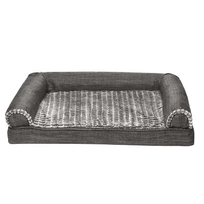 Perfect for cats and dogs of all ages, the FurHavenâ„¢ Luxe Fur & Performance Linen pet bed is a short-sided pet sofa that is sure to be your pet’s favorite new snuggle spot. Bolsters are filled with 100% recycled fluffy fill. Sofa’s gusset and bolsters are covered in stylish easy-care fabrics with the look and feel of linen, with a super soft plush faux fur sleep surface that is oh-so-soft on noses and paws. Available in four convenient sizes and two-color options, you are sure to find a purrfect fit for your pet. The cover is easily removed and machine washable for your convenience.