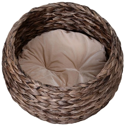 FURNIinspire cat house combines functionality with feline-friendly design through its convertible rotating basket. The elevated structure provides a secure perch that satisfies cats’ instinct to climb while the plush flannel-covered cushion ensures maximum comfort. Crafted from natural water hyacinth with steel wire reinforcement, it offers durability with a stylish woven appearance that complements any home decor.