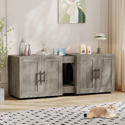 - 🐈Integrated furniture: Our double-cage cat litter cabinet serves a dual purpose, functioning not only as a cat house but also as a private and secluded cat toilet. This multi-functional piece can also be utilized as a TV cabinet, coffee table, or other decorative furniture, adding both practicality and elegance to your living space.