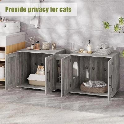 - 🐈Sophisticated design: Our double-cage cat litter cabinet features a carefully designed entrance hole in the middle section, allowing for easy access for your cats while promoting proper ventilation and lighting within the interior space. Additionally, the cabinet is constructed with waterproof materials, making it effortless to clean and maintain.