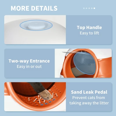 - Easy Access: A large front door helps kitty get in and out. It has a grate down below, preventing cats from spreading litter outside the box when they walk out.