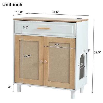 Transform your home with the Gulches White Cat Litter Box Cabinet, a stylish and functional addition for modern pet owners. This chic cat house features a sisal scratching door, allowing your feline friend to indulge their scratching instincts while protecting your furniture. The upper drawer provides ample storage for your cat’s essentials, magazines, or remotes, seamlessly blending practicality with elegance. Crafted from high-quality materials and supported by sturdy solid wood legs, this cabinet ensures safety for both pets and people. Elevate any room in your home with this versatile and sophisticated cat litter box cabinet!