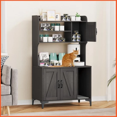 - Wooden Pet House Side End Table – Functionality meets style with the included 3 open shelves and storage cabinet. Open shelves are ideal for storing pet nail clippers, toys, treats, and even some of your small items. The storage cabinet offers a hidden space for larger pet accessories