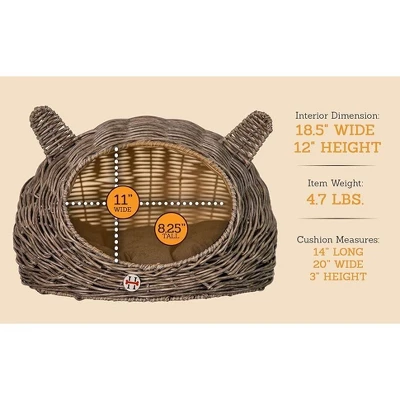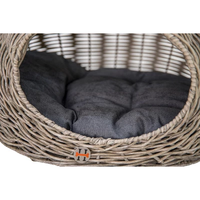 - STURDY AND LONG-LASTING: The Huntley Cat house is hand-made with a woven wicker material, reinforced edges to provide a safe and sturdy house for your pet. The Huntley Pet house is built to last and is intended for daily use for your small pet.