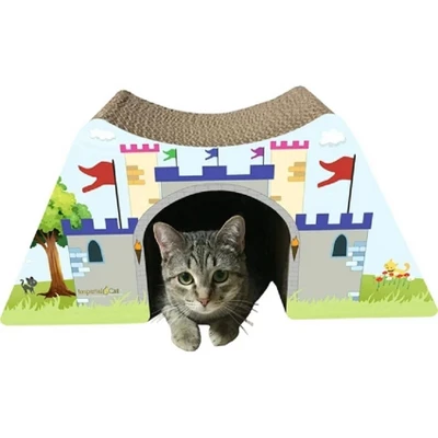 This cat scratcher is built to please all the princes and princesses out there! Contains a 7″ Tall x 7″ Wide opening that cats love to crawl through! The Imperial Cat Scratch ‘n Shapes Castle is the ideal cat scratcher – made from rough, durable corrugated cardboard, the Imperial Cat Scratch ‘n Shapes Castle mimics the feel of real tree bark, so it feels natural to kitty’s claws and paws. The Imperial Cat Scratch ‘n Shapes Castle is designed to rip and tear under your kitty’s claws, providing for great visual marking, a main reason your cat scratches in the first place. You think it looks torn up and ugly, but your cat thinks it looks like home! Contrary to popular belief, your cat doesn’t scratch to “sharpen” his claws, but rather to remove the outer layer of nail, which sheds naturally every few weeks. And the corrugated cardboard is a unique surface in your home, it feels different than your carpet or sofa, so it’s easier to train your cat to use the Imperial Cat Scratch ‘n Shapes Castle instead of your furniture. Plus, it just feels good for your kitty to stretch out and scratch away! Cats may also like to sleep and play on the Imperial Cat Scratch n’ Shapes Castle, and that’s okay. The Imperial Cat Scratch n’ Shapes Castle is made with non-toxic paper, ink, and glue, so it’s purrfectly safe for cats and kittens. Every Imperial Cat Scratch ‘n Shape Castle comes with a bag of Imperial Cat Pure All-Natural Catnip – sprinkle on a little or sprinkle on a lot for an aroma that will attract your cat like a magnet and get the fun started!