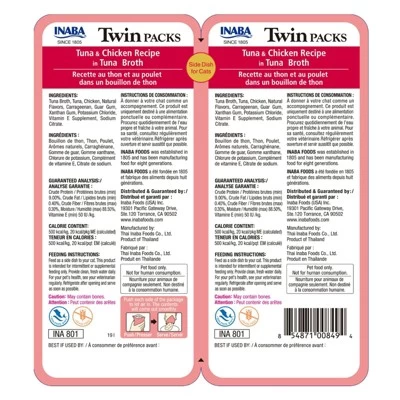 The Inaba Chicken and Tuna Recipe in Tuna Broth Cat Food Twin Pack is a convenient and delicious option for your feline friend. Each pack contains two 2.8 oz cans of cat food, providing a satisfying meal for your cat. Made with real chicken and tuna, this recipe is sure to please even the pickiest eaters. The tuna broth adds a flavorful touch that will have your cat coming back for more. This twin pack comes in a case of 8, ensuring you always have a supply of tasty cat food on hand. Treat your cat to the Inaba Chicken and Tuna Recipe in Tuna Broth Cat Food Twin Pack today!