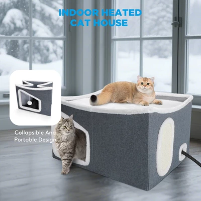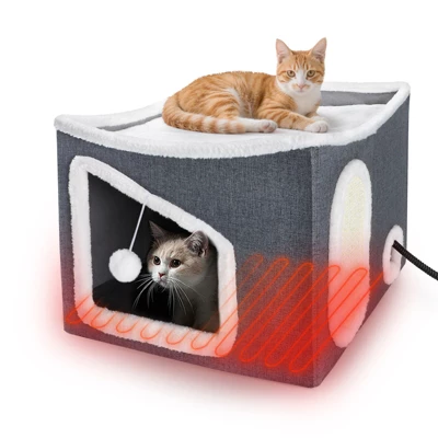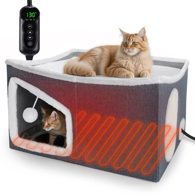 Surprise your pet-loving friends and family with this all-in-one comfort solution! With its elegant design and practical functionality, this heated cat house makes an ideal gift for Christmas, Halloween,Birthdays, or other occasions. Your pets will enjoy warmth and playtime all year round!