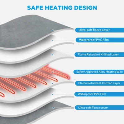 - Safe & Efficient Heating System£ºFeatures a multi-layer safe heating design with ultra-soft fleece covers, waterproof PVC films, flame-retardant knitted layers, and safety-approved alloy heating wires. Provides a warm haven for pets while ensuring absolute safety.