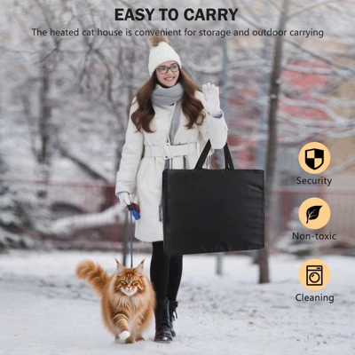 - Easy to Carry & Practical£ºThis heated cat house is convenient for storage and outdoor carrying. It’s non-toxic, easy to clean, and ensures the security of your pets, making it a hassle-free choice for pet owners.