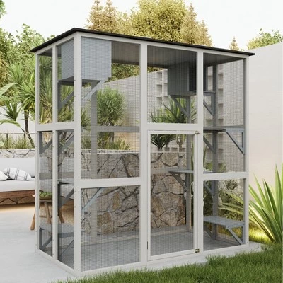- Durable & Weatherproof Build: Constructed from solid wood with black rust-proof metal wire, this catio ensures strength, safety, and long-term outdoor use. The asphalt roof protects against sun and rain.